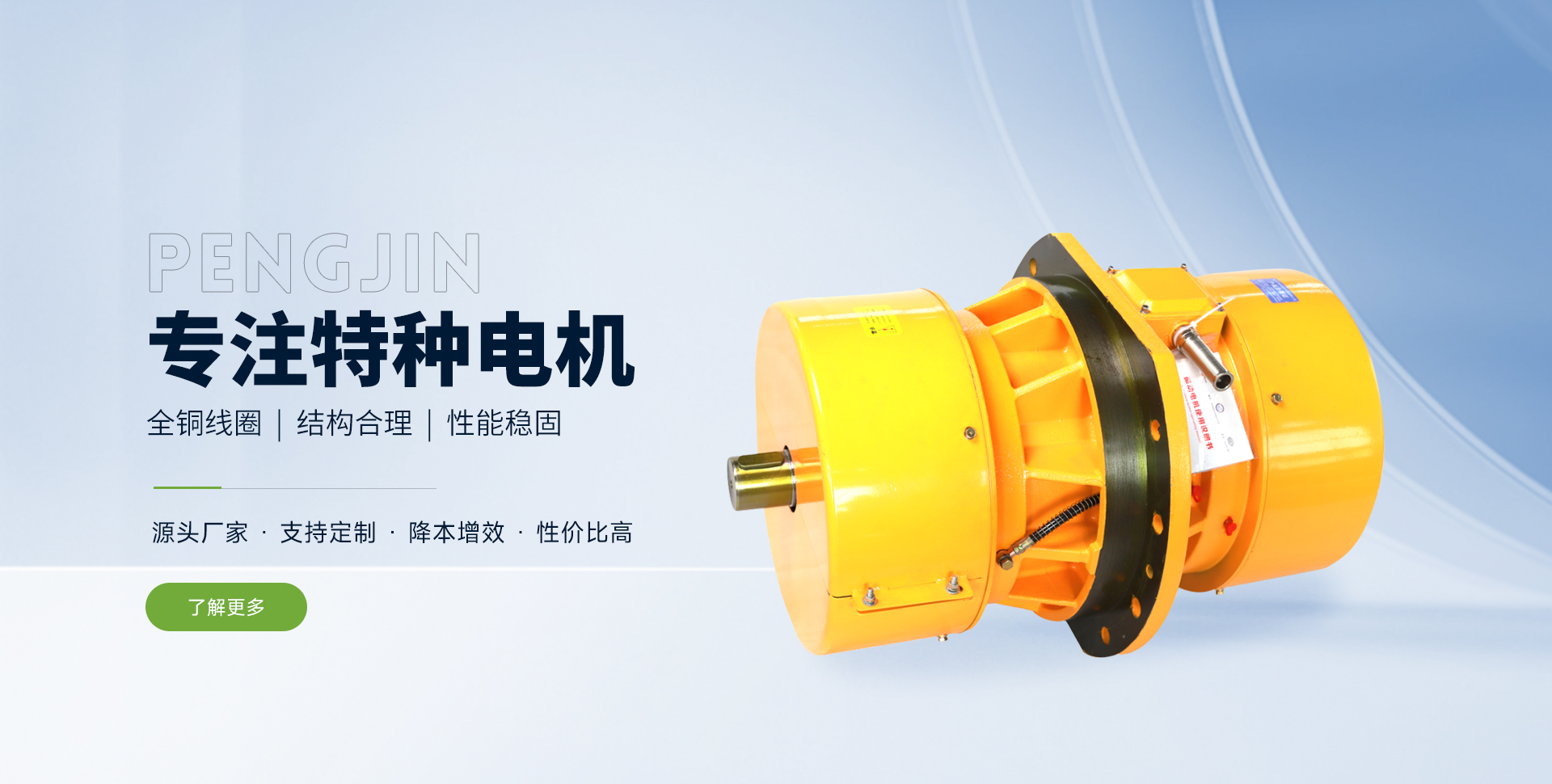 新鄉市鵬錦特種電機有限公司是生產各類特種電機的制造商。 公司位于中原地區的河南省新鄉市關堤創業園區。緊鄰107國道,距京珠高速公路新鄉站僅3公里,交通極為便利。公司在工業園區內的標準化廠房建有規(guī)范的電機制造、組裝、檢測生產流水線。同時配備了軸承裝配,數控繞線,真空絕緣處理,轉子動平衡調試,數控車床,電機出廠試驗微機處理系統等的工藝裝備和制造檢測設備。目前公司生產的所有產品絕緣等級均為F級以上,提升了產品品質,有力貫徹了“在持續的質量保證體系下,始終提供客戶滿意的產品和服務”的公司產品服務方針。公司產品質量穩(wěn)定,歷年通過,行業、省市技術監(jiān)督局的產品質量檢測?! 」颈小翱萍记笙龋a品求實,管理求真,服務求誠”的經營理念,努力打造支意識靠前,技能高的高素質團隊;長期與國內行業科研所和部分院校保持良好的合作關系,了解掌握行業動態(tài);在技術研究方面投入大量資金,堅持不地研制、引進國內外各類先進適用的新型產品和制作工藝;針對各行業客戶的具體要求,量身設計,制造出工況適用,性能穩(wěn)定的專用電機?! ∥覀兊漠a品廣泛應用于動力、控制、冶金、起重、鑄造、造紙、煤炭、醫藥、食品、礦山、線纜、印刷、包裝、環(huán)保工程及新能源等各領域的不同工業機械中,受到了客戶的認可和好評。